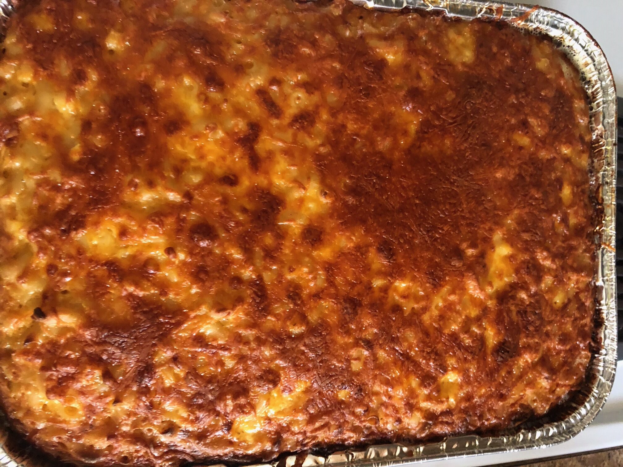 A pan of Shakir’s famous mac and cheese, straight from the oven.