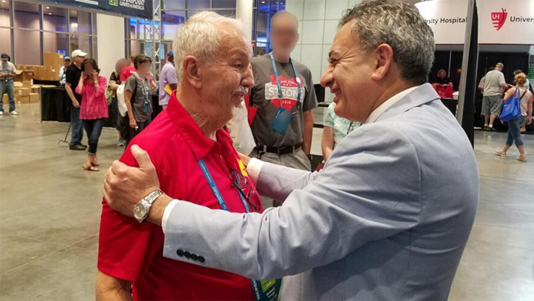 Bob Skaggs (above, left) is reunited with the surgeon who performed his kidney transplant, Dr. Bijan Eghtesad, in Cleveland in 2016.