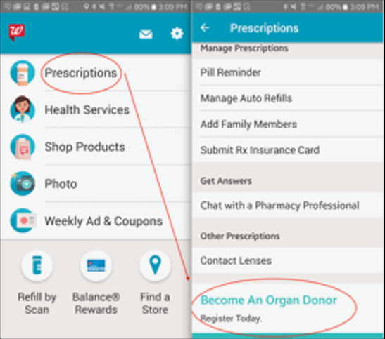 To help raise awareness and make the process as easy as possible, Walgreens partnered with Donate Life America on a campaign in June 2018 to help customers register through a prompt on the Walgreens app.