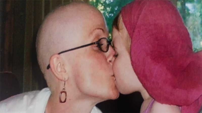 Stone with her daughter, sister, Olivia (far right) and grandmother, Ruby (center) by her side during treatment.