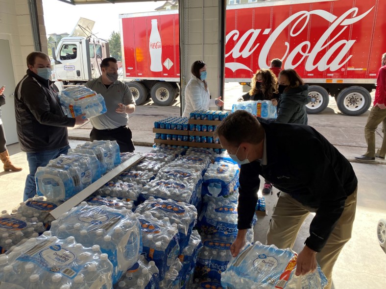 Out in the community, one of the immediate needs identified by local officials was clean drinking water. The fire had damaged and exposed pipes, leaving them open to contaminants entering the water supply, and led to a boil water advisory. Within days, a team of Walgreens employees, in partnership with Coca-Cola, had secured and delivered 10 pallets of badly needed bottled water to the Superior community center.