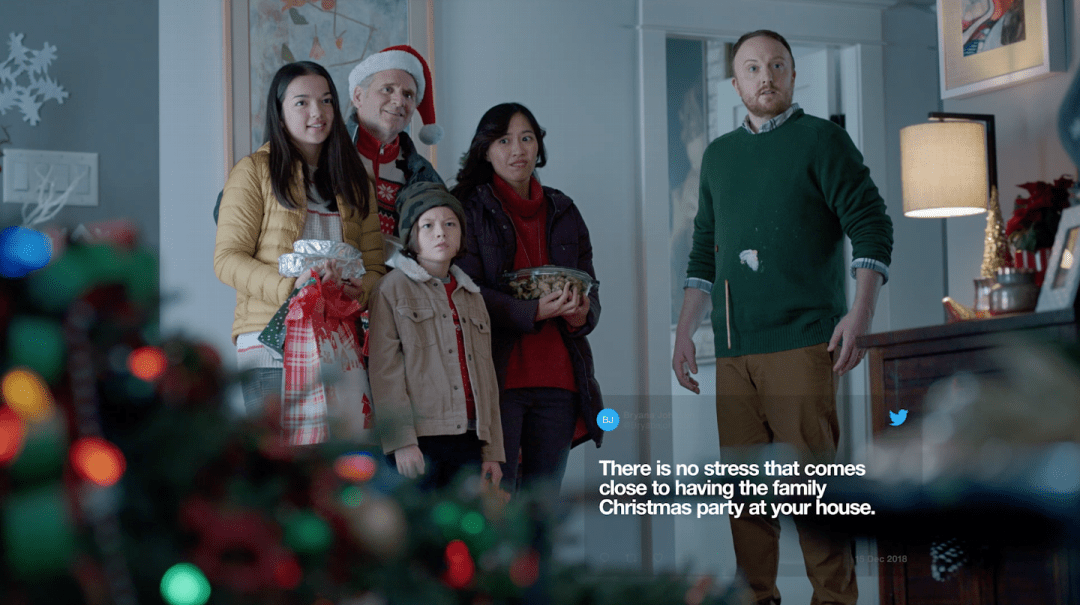 The result of these realizations is the tagline, “Get in. Get out. Get jolly.” As part of the campaign, several vignettes feature actual customer tweets talking about their own mishaps during the holidays.