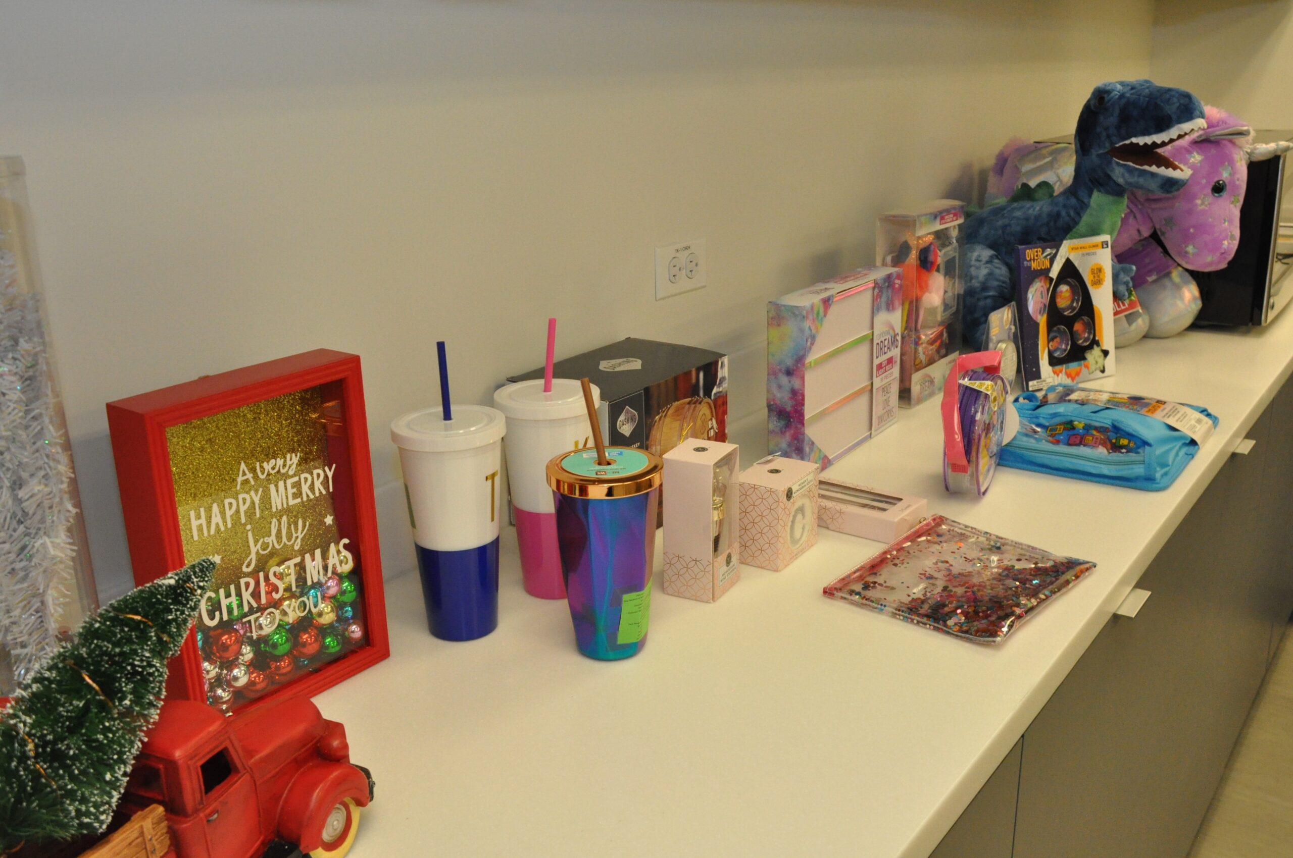 After our stomachs are too full to taste test any more samples, we meet Santiago Kloehr, associate manager for owned brand commercialization. He recalls sitting at his workspace a few months ago, staring into the eyes of a purple plush unicorn that was in consideration to be part of Walgreens latest wave of owned-brand toys. It had everything, he thought – almost. He reached across his desk and grabbed a silvery set of wings (one of many spare toy parts he and his colleagues have within arm’s reach at any given time). In his other hand was a stapler.