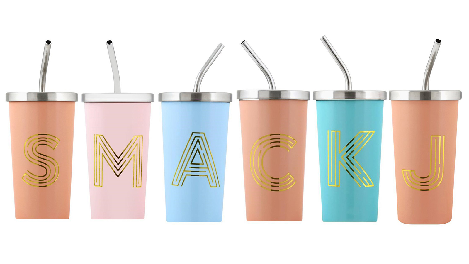 No, it isn’t the DJ headlining Coachella this year, or a new Star Wars character. It’s an acronym for the most commonly sought letters on monogrammed products, such as mugs, beverage bottles and tumblers – the latter of which (below) was part of our owned-brand assortment at the holidays. Generally, an initial order will consist of just these six letters: S, M, A, C, K and J. Then, if they prove to be selling well, the team will add the next two letters: R and T.